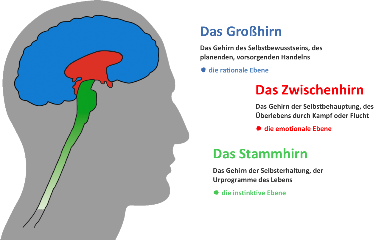 Der amerikanische Hirnforscher Paul McLean, der die wissenschaftliche Basis der Biostruktur-Analyse entwickelt hat, unterscheidet drei Hirnbereiche: